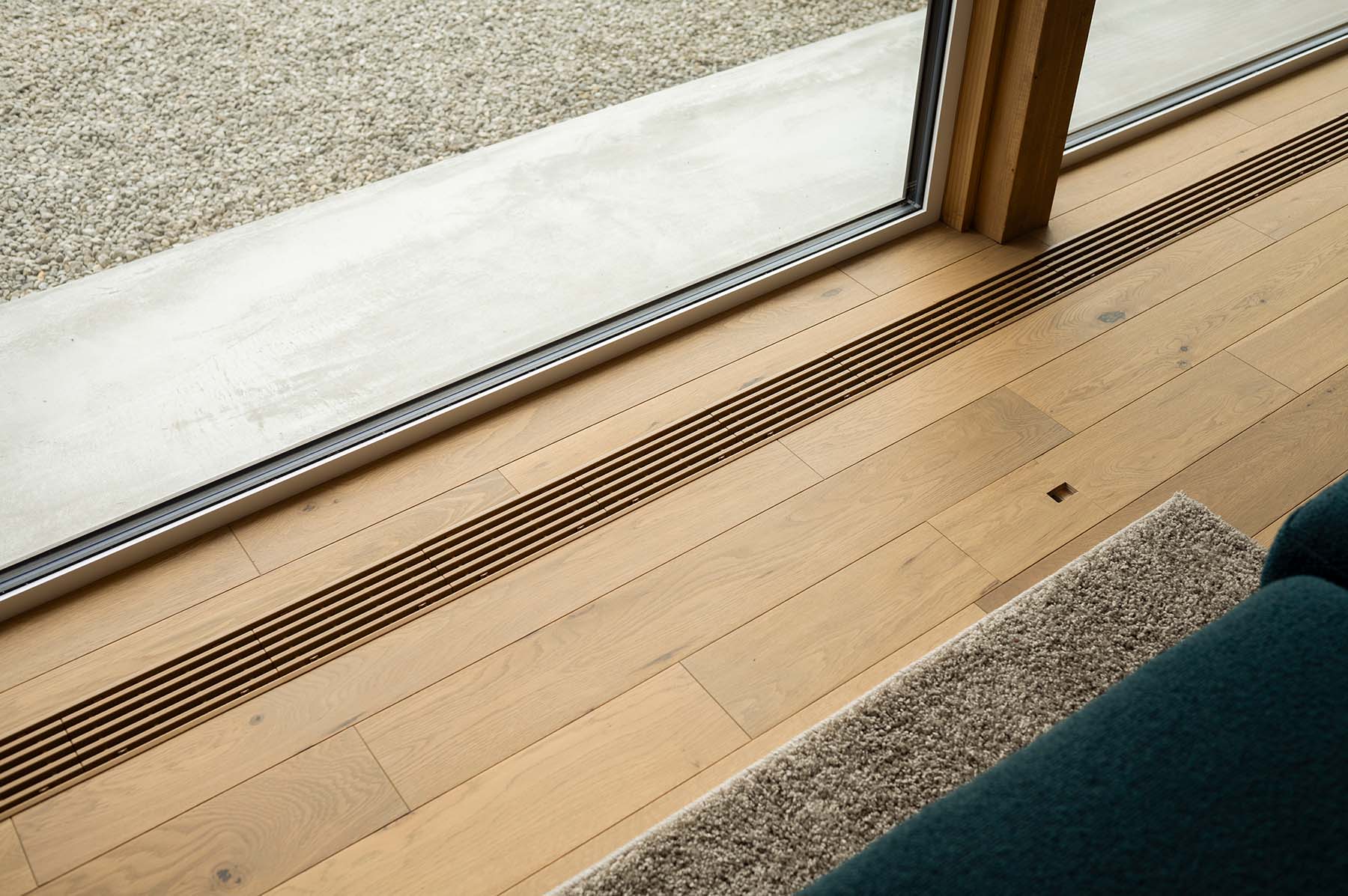 全館空調「YUCACOシステム」の熱や冷気は床ガラリを通じて室内を巡る