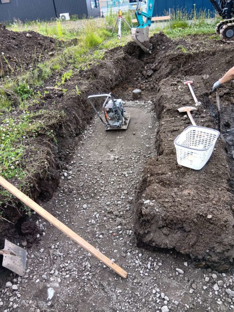 配管が終わると、埋め戻しの作業にはいります。