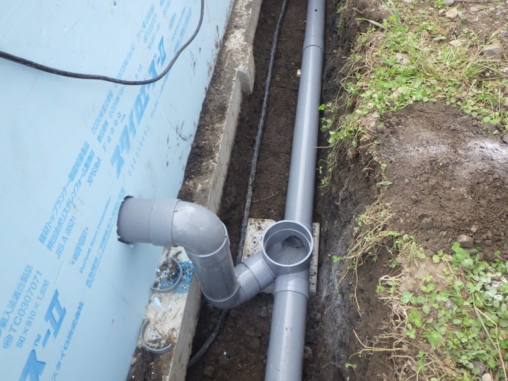 型枠解体が完了し、外部埋設配管の施工に設備屋さんがやって来ました☺
