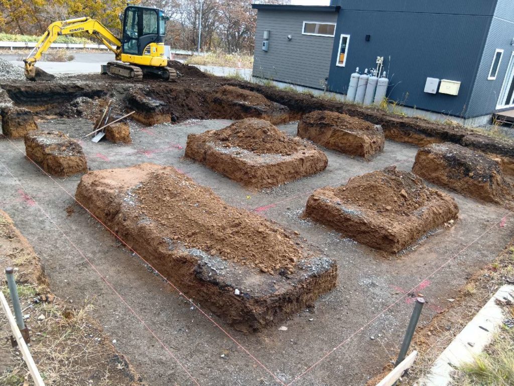 まずは基礎工事です!!重機を使って、掘削をしていきます。