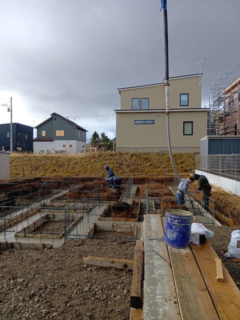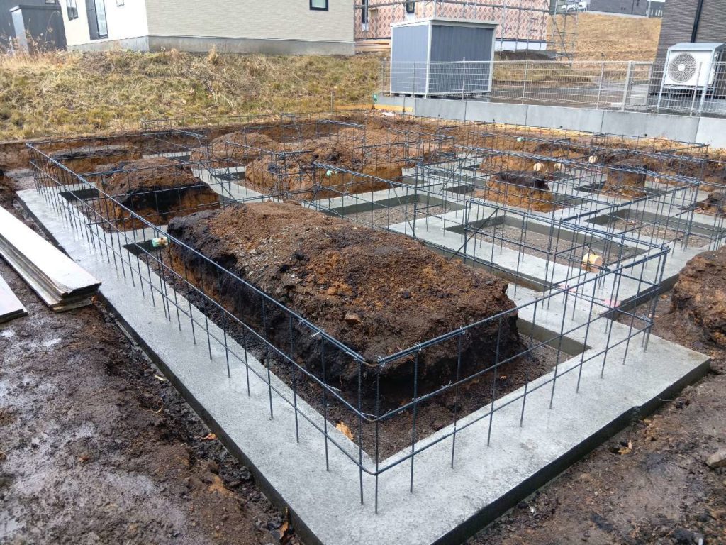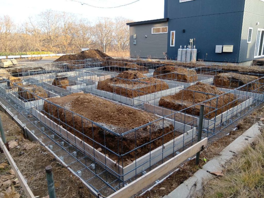 転圧が終了し土間コンクリート用の配筋を行い・・・
