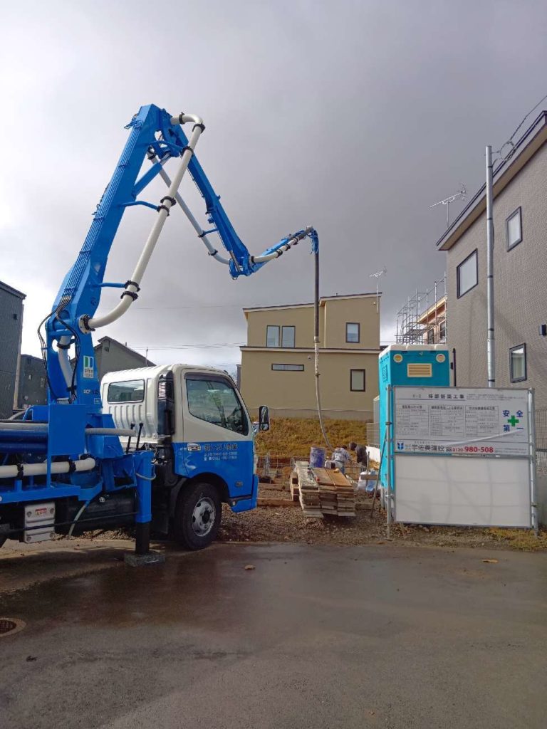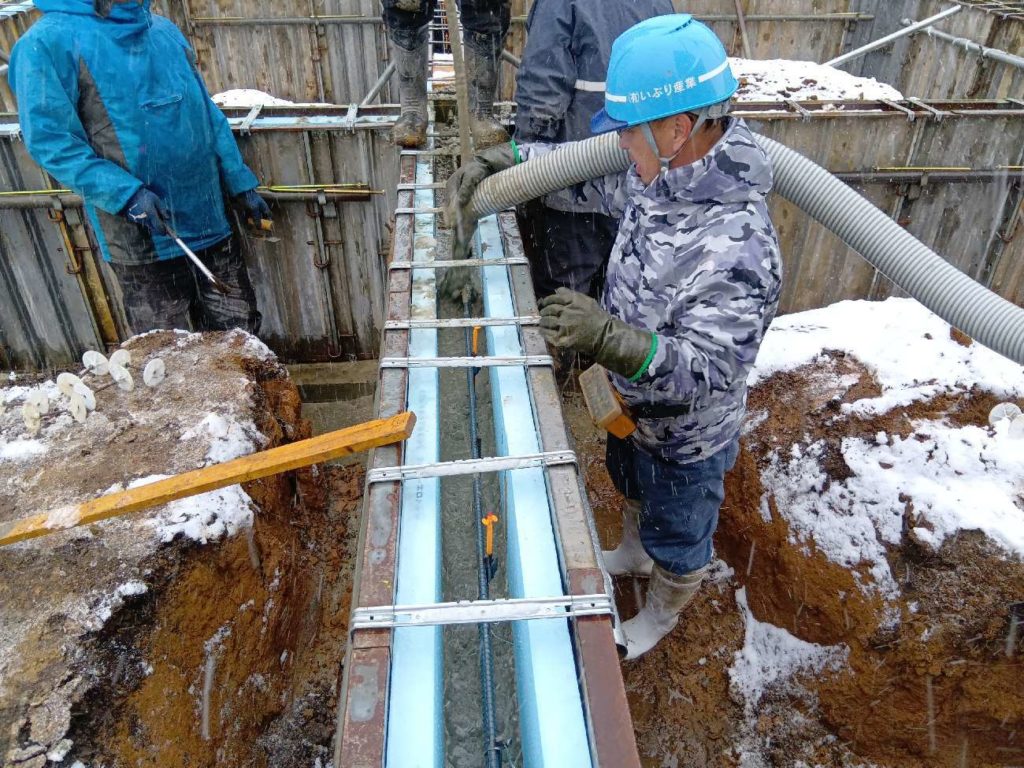 コンクリートが流れてくる瞬間、体全体で支えなければいけないほど力がいるようです(;^_^A