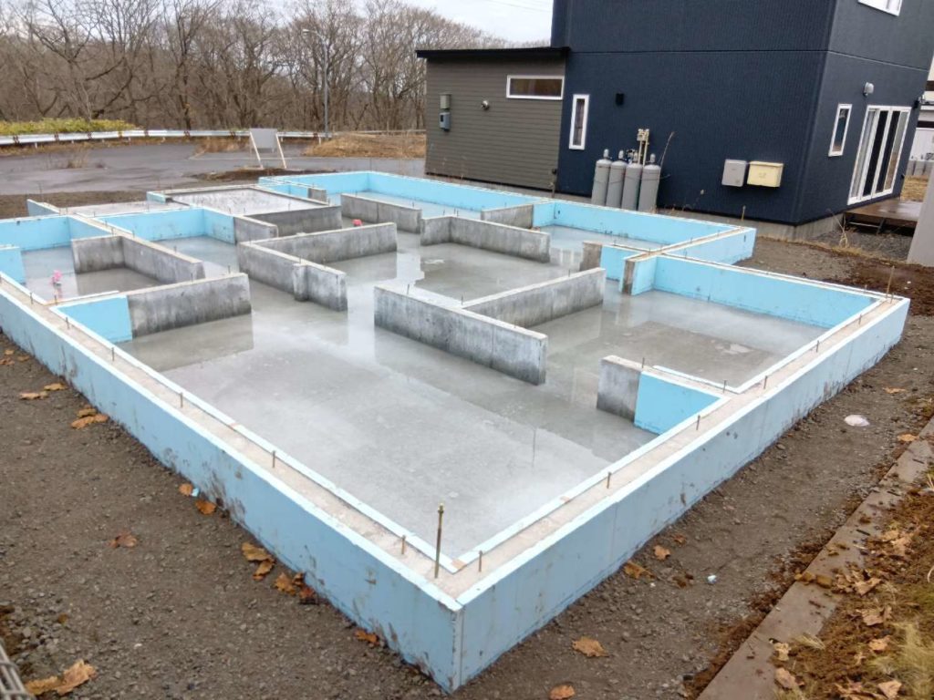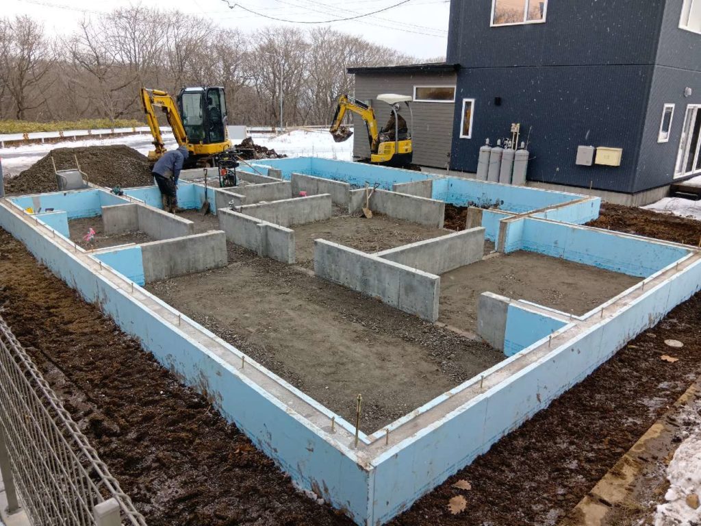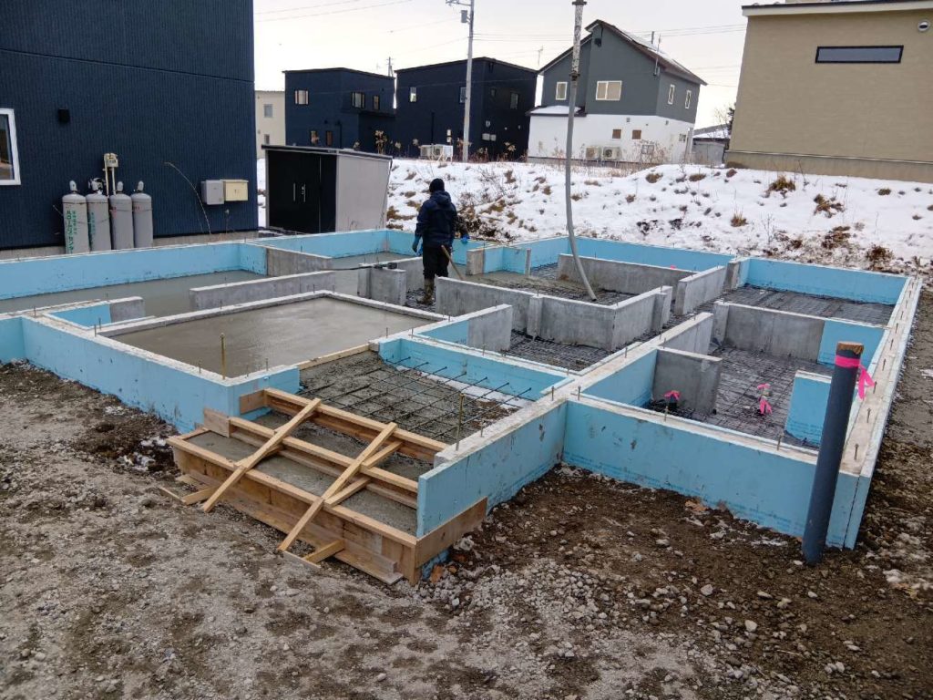 土間コンクリートの打設をもって、基礎屋さんのお仕事は終了です。