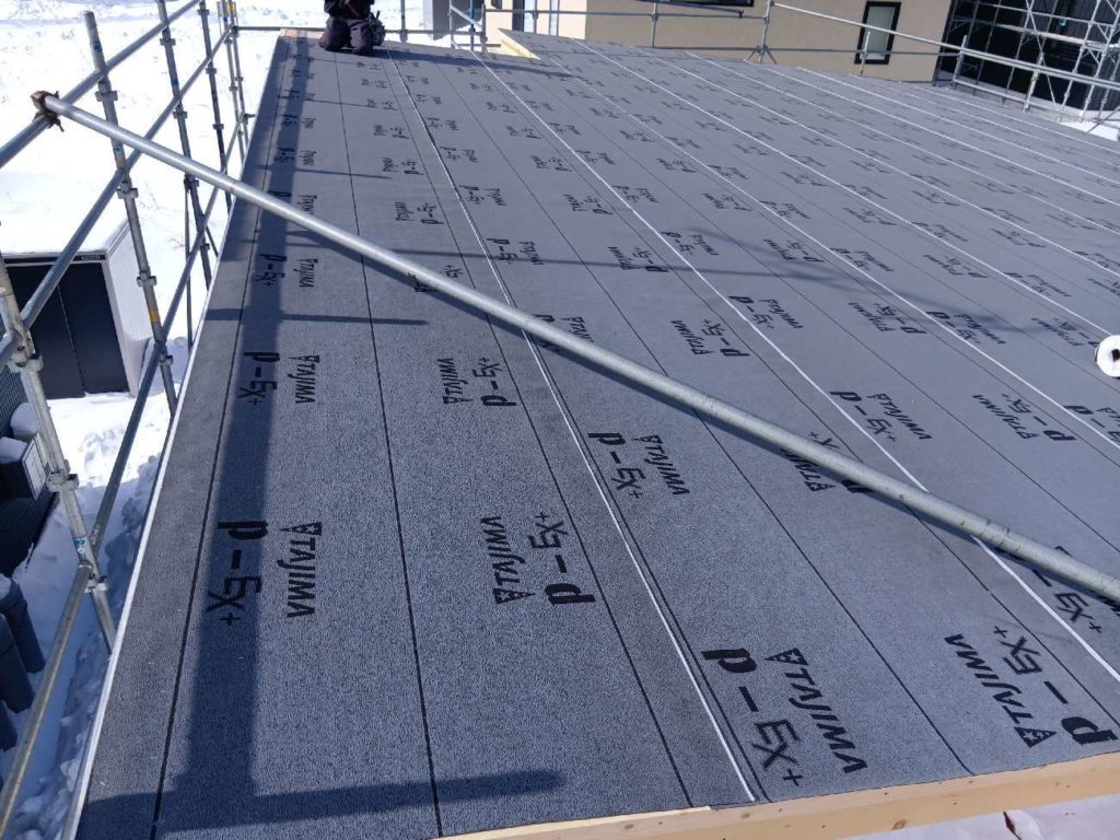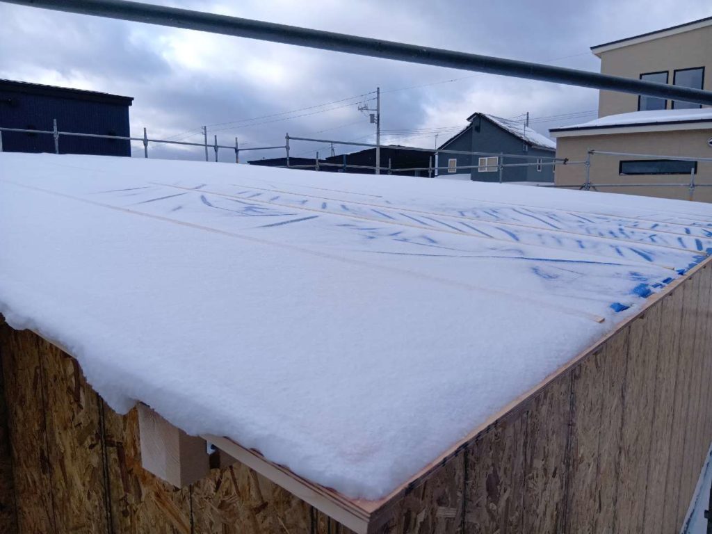 屋根の合板が張り終わり・・・養生もしっかりと!!