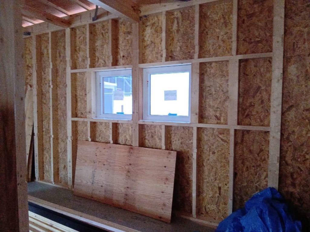断熱材が搬入され、隙間なく壁に入れていきます!!