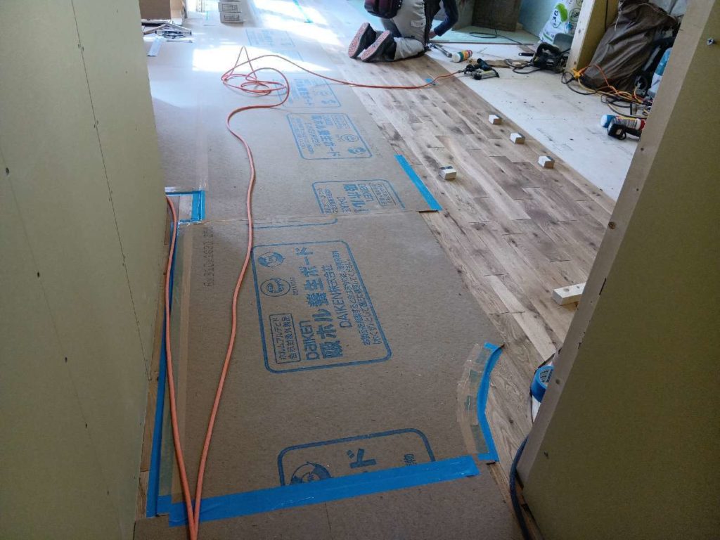 続いて、フローリング張りが始まりました(*^^*)