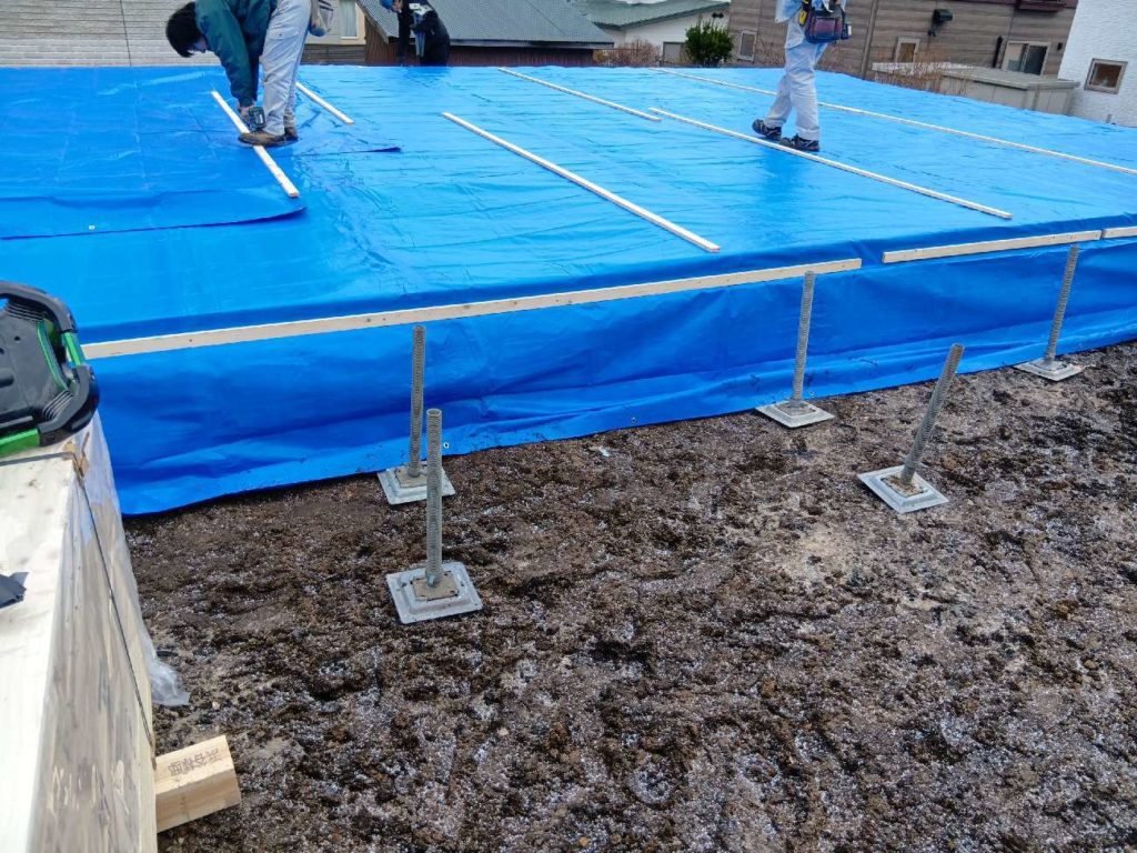 その上に透湿防水シートを施工し、これで雨も防げます(*^^)v