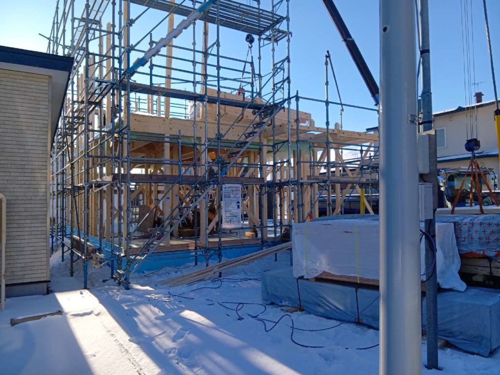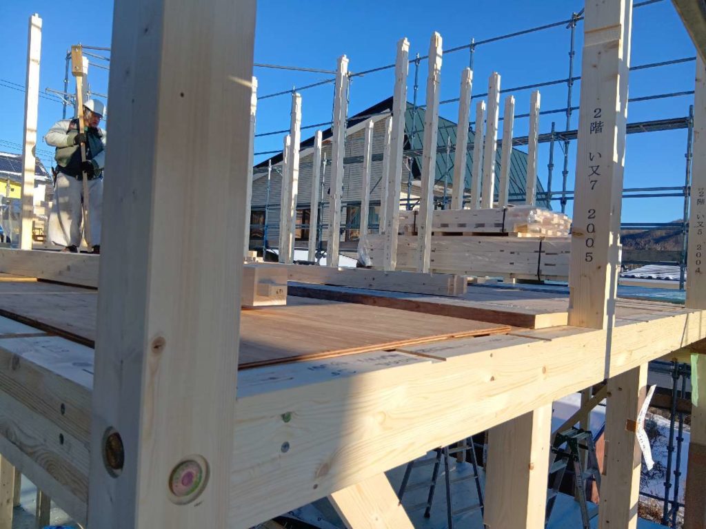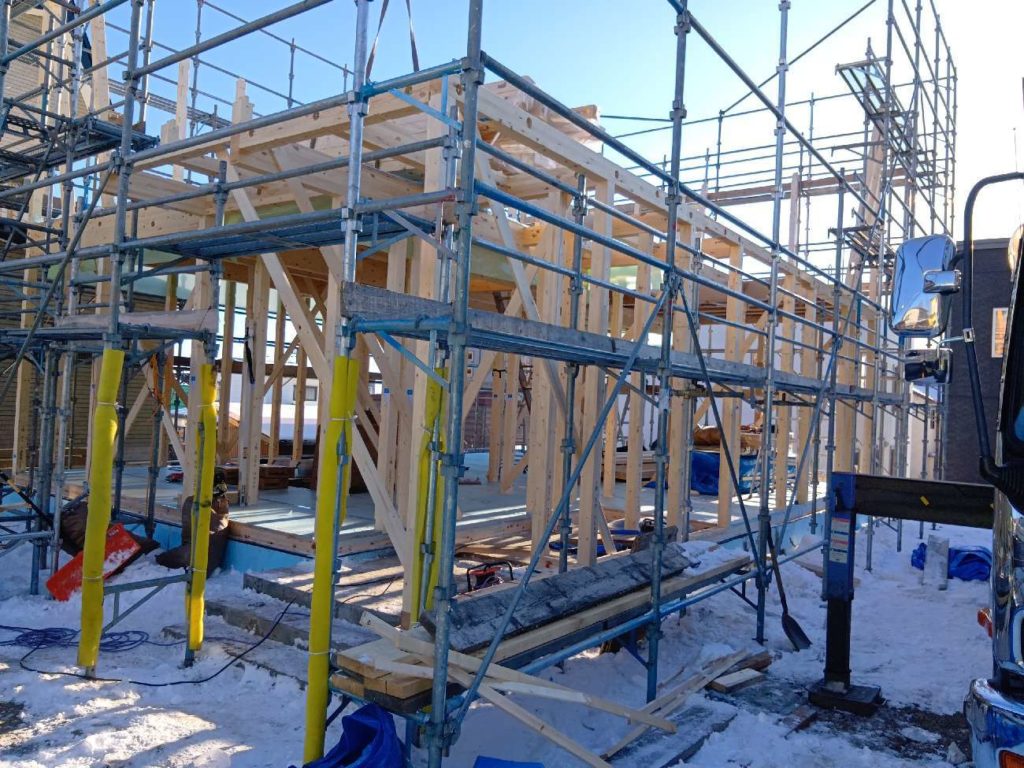 年明けから大工さんの建て込みと造作作業の開始です☺