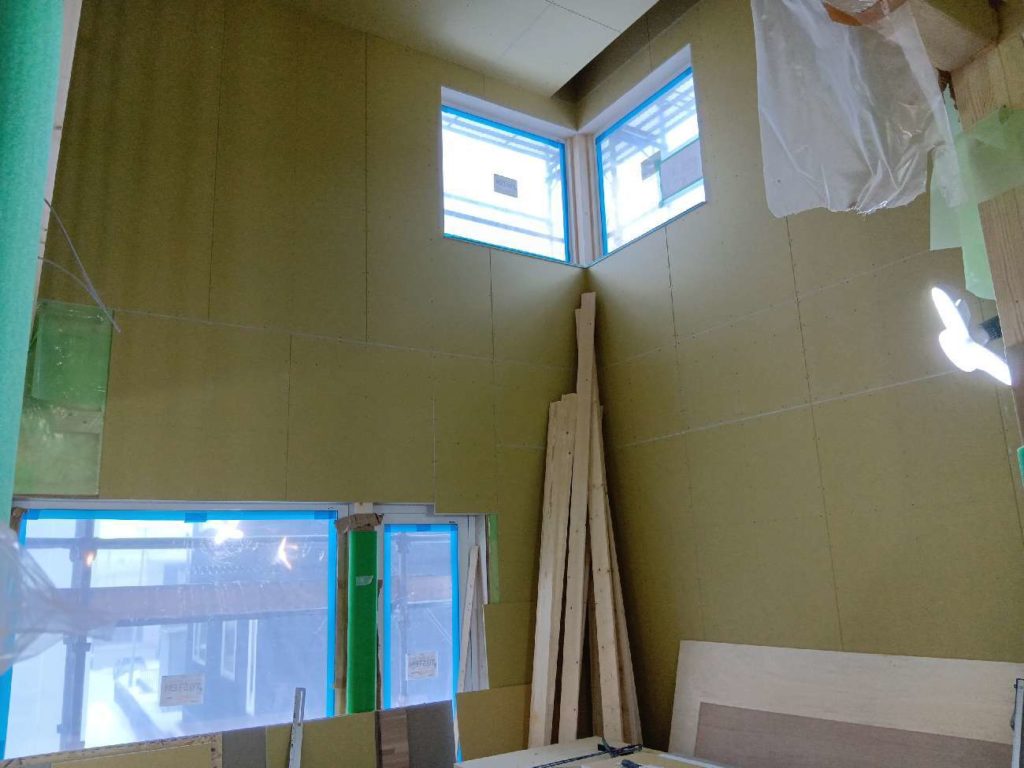 構造用面材の施工が進み、外観がはっきりとして来ました。
